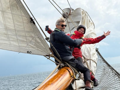 Nach kurzem Morgenregen bessert sich das Wetter, so dass wir nach dem Austritt aus dem Svendborg-Sund eine weiteren schönen Segelschlag nach Sønderborg geniessen können. Wir legen unmittelbar beim Schloss an und bleiben dort nicht lange allein. Die Dreimasterbark (ehemaliger Walfänger) Artemis und die Drei-mastbarkentine (ehemaliges Fischereischiff) Antigua leisten uns Gesellschaft. Abends singt dort ein Shanty-Chor, danach lassen wir von Jeroens Ausführungen über die Renovation der Abel Tasman beeindrucken. Er hat mit seinem Team das Schiff ziemlich vollständig ausgeräumt, im Rumpf Schwachstellen behoben und anschliessend so gut wie alles neu eingebaut. Dabei waren gleichermassen sein handwerkliches Geschick, technischen Fachkenntnisse und administrative Fähig-keiten für die erfolgreiche Bewältigung einer Flut von Vorschriften und amtlicher Kontrollen gefragt.
